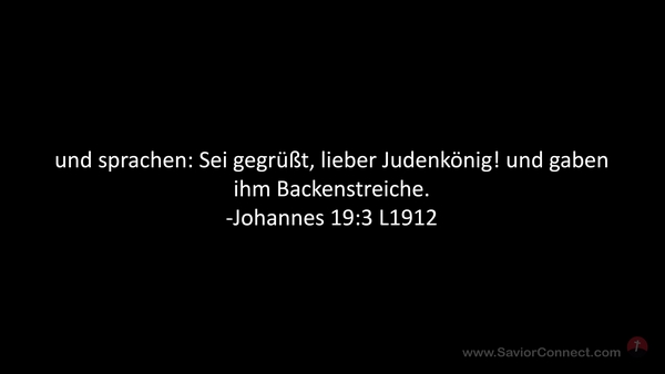 und sprachen: Sei gegrüßt, lieber Judenkönig! und gaben ihm Backenstreiche. -Johannes 19:3 L1912
