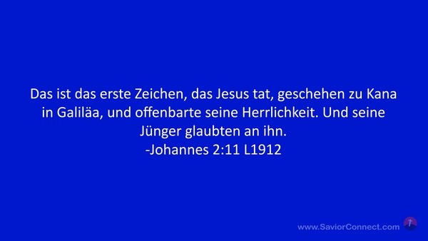 Das ist das erste Zeichen, das Jesus tat, geschehen zu Kana in Galiläa, und offenbarte seine Herrlichkeit. Und seine Jünger glaubten an ihn. -Johannes 2:11 L1912