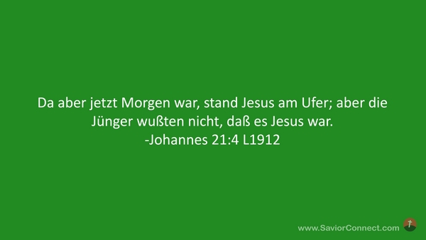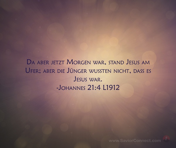 Da aber jetzt Morgen war, stand Jesus am Ufer; aber die Jünger wußten nicht, daß es Jesus war. -Johannes 21:4 L1912