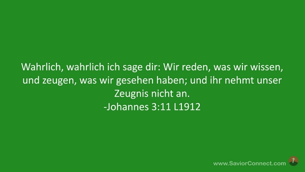 Wahrlich, wahrlich ich sage dir: Wir reden, was wir wissen, und zeugen, was wir gesehen haben; und ihr nehmt unser Zeugnis nicht an. -Johannes 3:11 L1912