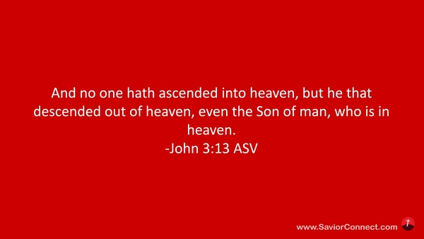 Und niemand fährt gen Himmel, denn der vom Himmel herniedergekommen ist, nämlich des Menschen Sohn, der im Himmel ist. -Johannes 3:13 L1912