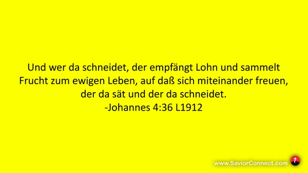 Und wer da schneidet, der empfängt Lohn und sammelt Frucht zum ewigen Leben, auf daß sich miteinander freuen, der da sät und der da schneidet. -Johannes 4:36 L1912