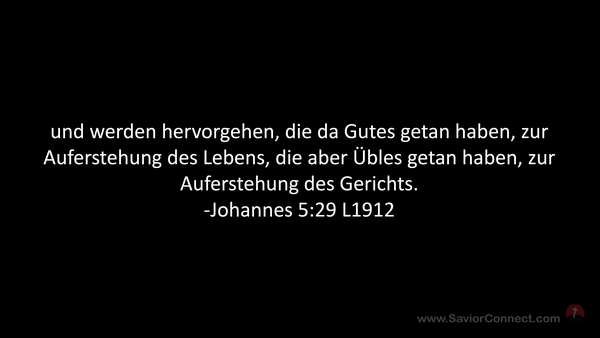 und werden hervorgehen, die da Gutes getan haben, zur Auferstehung des Lebens, die aber Übles getan haben, zur Auferstehung des Gerichts. -Johannes 5:29 L1912