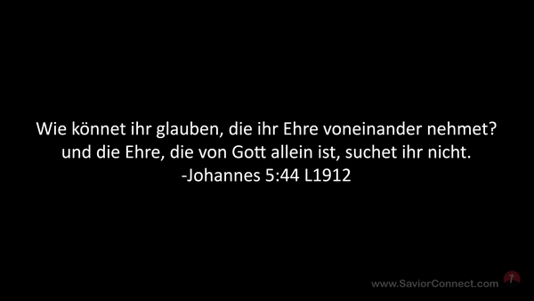 Wie könnet ihr glauben, die ihr Ehre voneinander nehmet? und die Ehre, die von Gott allein ist, suchet ihr nicht. -Johannes 5:44 L1912