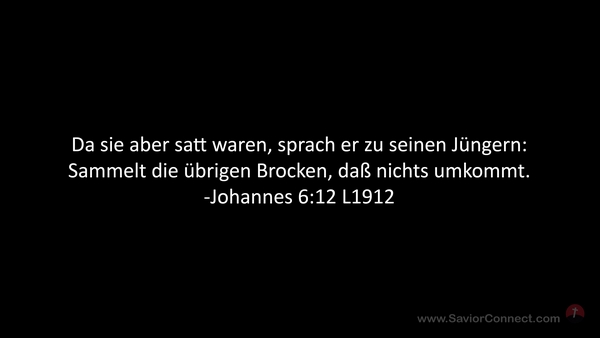 Da sie aber satt waren, sprach er zu seinen Jüngern: Sammelt die übrigen Brocken, daß nichts umkommt. -Johannes 6:12 L1912