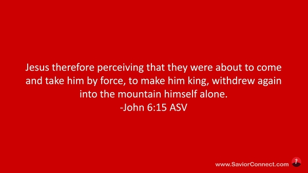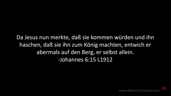 Da Jesus nun merkte, daß sie kommen würden und ihn haschen, daß sie ihn zum König machten, entwich er abermals auf den Berg, er selbst allein. -Johannes 6:15 L1912