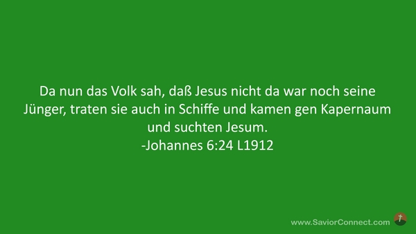 Da nun das Volk sah, daß Jesus nicht da war noch seine Jünger, traten sie auch in Schiffe und kamen gen Kapernaum und suchten Jesum. -Johannes 6:24 L1912