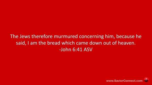 Da murrten die Juden darüber, daß er sagte: Ich bin das Brot, daß vom Himmel gekommen ist, -Johannes 6:41 L1912