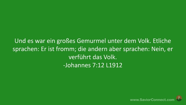 Und es war ein großes Gemurmel unter dem Volk. Etliche sprachen: Er ist fromm; die andern aber sprachen: Nein, er verführt das Volk. -Johannes 7:12 L1912