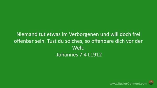Niemand tut etwas im Verborgenen und will doch frei offenbar sein. Tust du solches, so offenbare dich vor der Welt. -Johannes 7:4 L1912