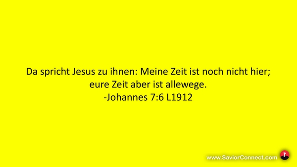 Da spricht Jesus zu ihnen: Meine Zeit ist noch nicht hier; eure Zeit aber ist allewege. -Johannes 7:6 L1912