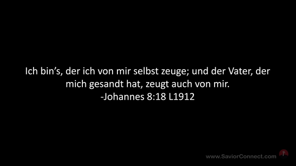 Ich bin's, der ich von mir selbst zeuge; und der Vater, der mich gesandt hat, zeugt auch von mir. -Johannes 8:18 L1912