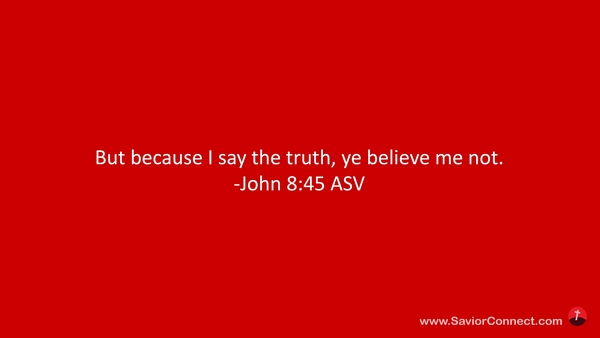 Ich aber, weil ich die Wahrheit sage, so glaubet ihr mir nicht. -Johannes 8:45 L1912