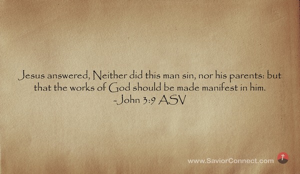 Jesus antwortete: Es hat weder dieser gesündigt noch seine Eltern, sondern daß die Werke Gottes offenbar würden an ihm. -Johannes 9:3 L1912