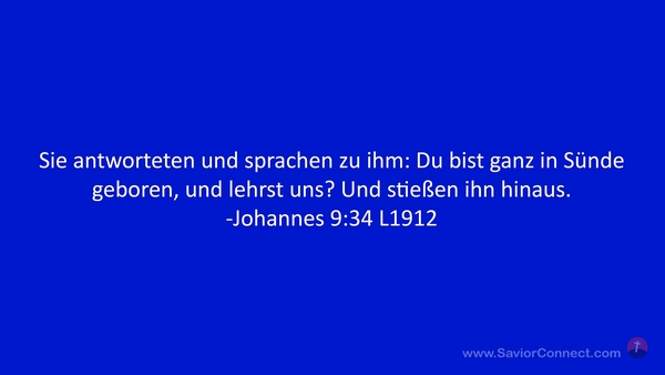 Sie antworteten und sprachen zu ihm: Du bist ganz in Sünde geboren, und lehrst uns? Und stießen ihn hinaus. -Johannes 9:34 L1912