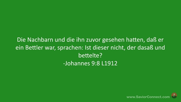 Die Nachbarn und die ihn zuvor gesehen hatten, daß er ein Bettler war, sprachen: Ist dieser nicht, der dasaß und bettelte? -Johannes 9:8 L1912