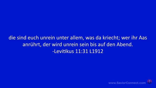 die sind euch unrein unter allem, was da kriecht; wer ihr Aas anrührt, der wird unrein sein bis auf den Abend. -Levitikus 11:31 L1912