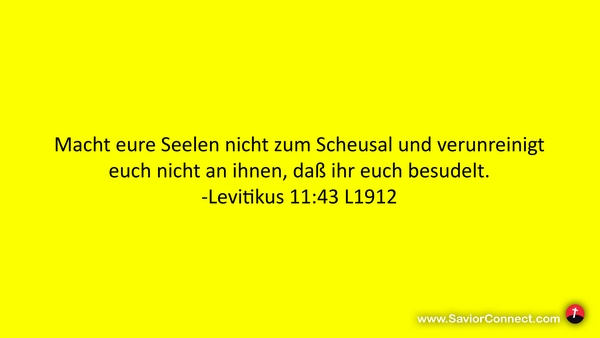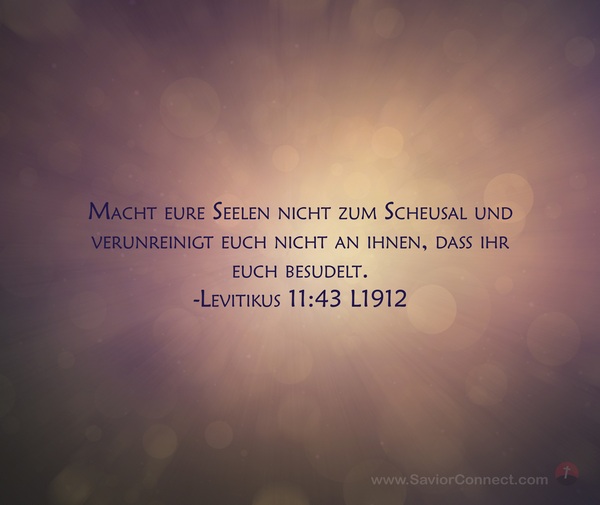 Macht eure Seelen nicht zum Scheusal und verunreinigt euch nicht an ihnen, daß ihr euch besudelt. -Levitikus 11:43 L1912