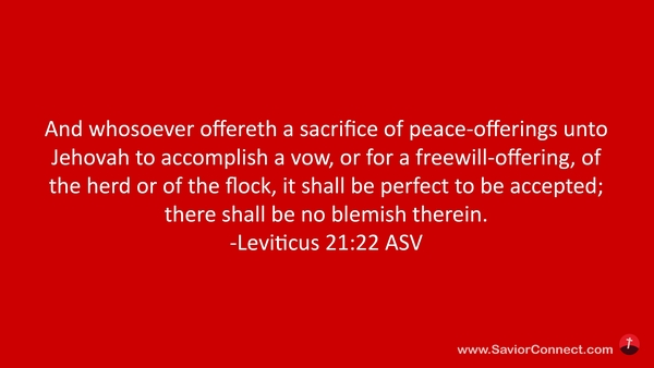 Und wer ein Dankopfer dem HERRN tun will, ein besonderes Gelübde oder von freiem Willen, von Rindern oder Schafen, das soll ohne Gebrechen sein, daß es angenehm sei; es soll keinen Fehl haben. -Levitikus 22:21 L1912