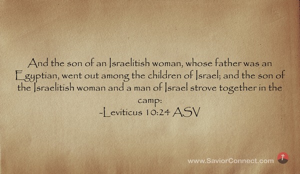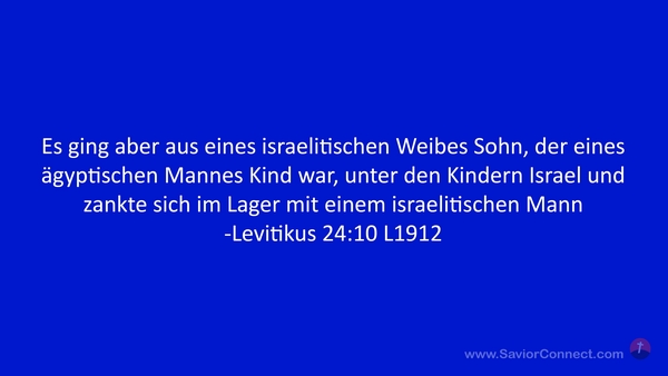Es ging aber aus eines israelitischen Weibes Sohn, der eines ägyptischen Mannes Kind war, unter den Kindern Israel und zankte sich im Lager mit einem israelitischen Mann -Levitikus 24:10 L1912