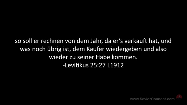 so soll er rechnen von dem Jahr, da er's verkauft hat, und was noch übrig ist, dem Käufer wiedergeben und also wieder zu seiner Habe kommen. -Levitikus 25:27 L1912