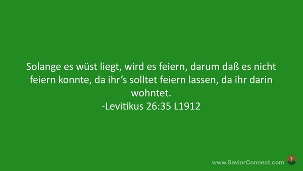 Solange es wüst liegt, wird es feiern, darum daß es nicht feiern konnte, da ihr's solltet feiern lassen, da ihr darin wohntet. -Levitikus 26:35 L1912