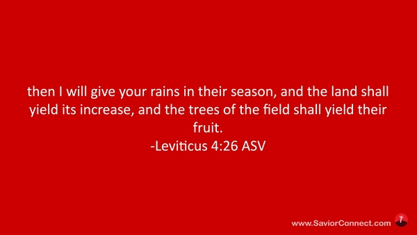 so will ich euch Regen geben zu seiner Zeit, und das Land soll sein Gewächs geben und die Bäume auf dem Felde ihre Früchte bringen, -Levitikus 26:4 L1912