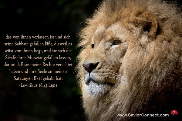 das von ihnen verlassen ist und sich seine Sabbate gefallen läßt, dieweil es wüst von ihnen liegt, und sie sich die Strafe ihrer Missetat gefallen lassen, darum daß sie meine Rechte verachtet haben und ihre Seele an meinen Satzungen Ekel gehabt hat. -Levitikus 26:43 L1912