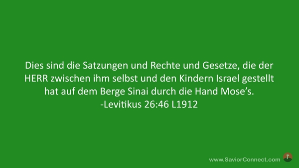 Dies sind die Satzungen und Rechte und Gesetze, die der HERR zwischen ihm selbst und den Kindern Israel gestellt hat auf dem Berge Sinai durch die Hand Mose's. -Levitikus 26:46 L1912