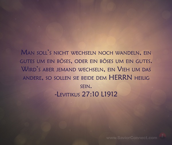 Man soll's nicht wechseln noch wandeln, ein gutes um ein böses, oder ein böses um ein gutes. Wird's aber jemand wechseln, ein Vieh um das andere, so sollen sie beide dem HERRN heilig sein. -Levitikus 27:10 L1912