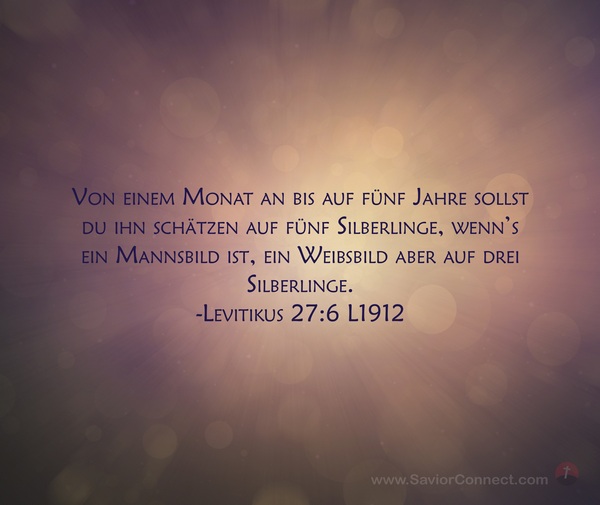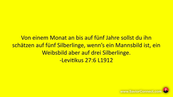 Von einem Monat an bis auf fünf Jahre sollst du ihn schätzen auf fünf Silberlinge, wenn's ein Mannsbild ist, ein Weibsbild aber auf drei Silberlinge. -Levitikus 27:6 L1912