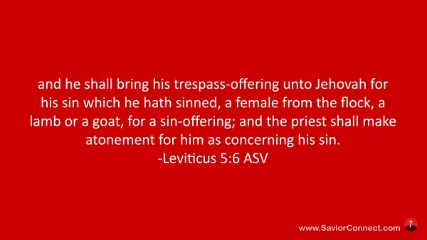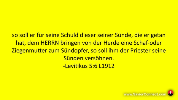 so soll er für seine Schuld dieser seiner Sünde, die er getan hat, dem HERRN bringen von der Herde eine Schaf-oder Ziegenmutter zum Sündopfer, so soll ihm der Priester seine Sünden versöhnen. -Levitikus 5:6 L1912