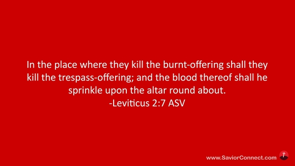 An der Stätte, da man das Brandopfer schlachtet, soll man auch das Schuldopfer schlachten und sein Blut auf dem Altar umhersprengen. -Levitikus 7:2 L1912