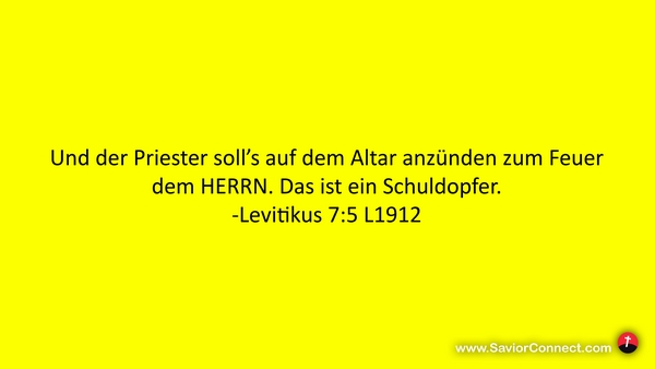 Und der Priester soll's auf dem Altar anzünden zum Feuer dem HERRN. Das ist ein Schuldopfer. -Levitikus 7:5 L1912