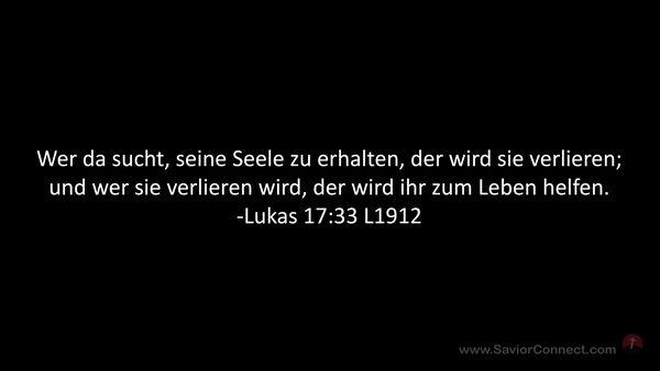 Wer da sucht, seine Seele zu erhalten, der wird sie verlieren; und wer sie verlieren wird, der wird ihr zum Leben helfen. -Lukas 17:33 L1912