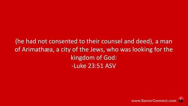 und hatte nicht gewilligt in ihren Rat und Handel. Er war von Arimathia, der Stadt der Juden, einer, der auch auf das Reich Gottes wartete. -Lukas 23:51 L1912
