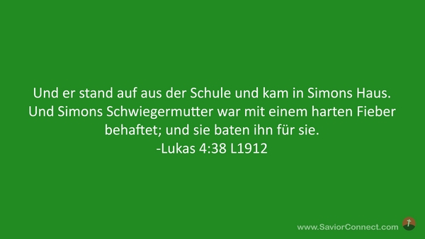 Und er stand auf aus der Schule und kam in Simons Haus. Und Simons Schwiegermutter war mit einem harten Fieber behaftet; und sie baten ihn für sie. -Lukas 4:38 L1912