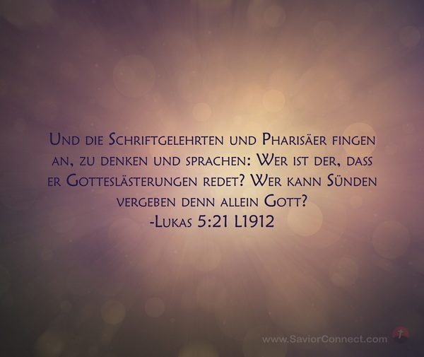 Und die Schriftgelehrten und Pharisäer fingen an, zu denken und sprachen: Wer ist der, daß er Gotteslästerungen redet? Wer kann Sünden vergeben denn allein Gott? -Lukas 5:21 L1912