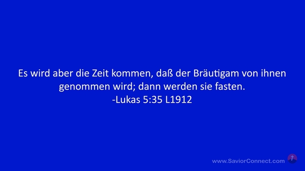Es wird aber die Zeit kommen, daß der Bräutigam von ihnen genommen wird; dann werden sie fasten. -Lukas 5:35 L1912