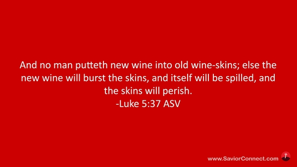 Und niemand faßt Most in alte Schläuche; sonst zerreißt der Most die Schläuche und wird verschüttet, und die Schläuche kommen um. -Lukas 5:37 L1912