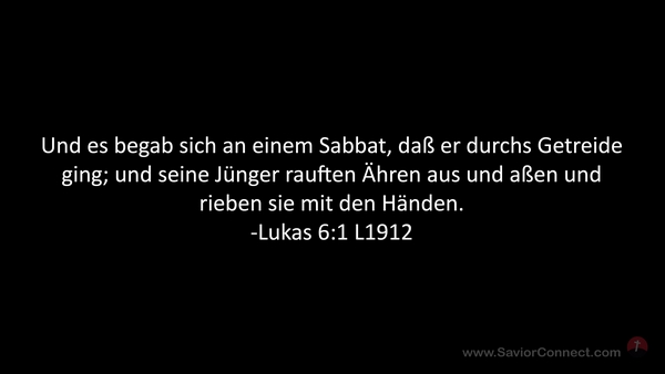 Und es begab sich an einem Sabbat, daß er durchs Getreide ging; und seine Jünger rauften Ähren aus und aßen und rieben sie mit den Händen. -Lukas 6:1 L1912