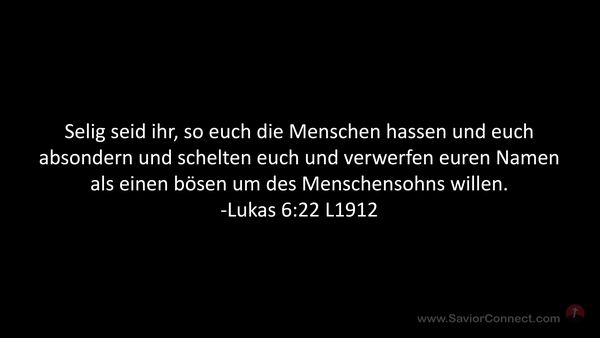 Selig seid ihr, so euch die Menschen hassen und euch absondern und schelten euch und verwerfen euren Namen als einen bösen um des Menschensohns willen. -Lukas 6:22 L1912