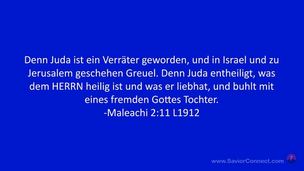 Denn Juda ist ein Verräter geworden, und in Israel und zu Jerusalem geschehen Greuel. Denn Juda entheiligt, was dem HERRN heilig ist und was er liebhat, und buhlt mit eines fremden Gottes Tochter. -Maleachi 2:11 L1912