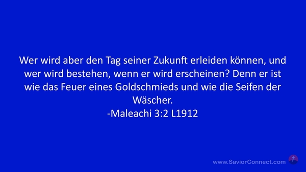 Wer wird aber den Tag seiner Zukunft erleiden können, und wer wird bestehen, wenn er wird erscheinen? Denn er ist wie das Feuer eines Goldschmieds und wie die Seifen der Wäscher. -Maleachi 3:2 L1912