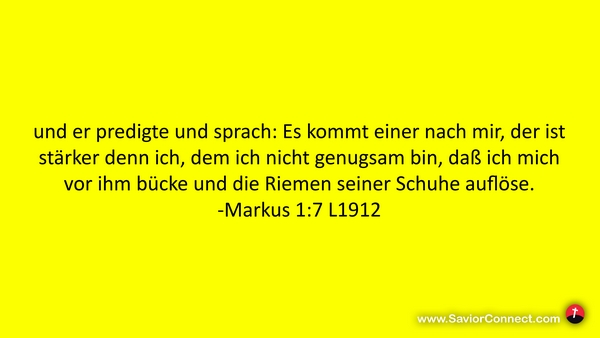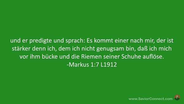 und er predigte und sprach: Es kommt einer nach mir, der ist stärker denn ich, dem ich nicht genugsam bin, daß ich mich vor ihm bücke und die Riemen seiner Schuhe auflöse. -Markus 1:7 L1912