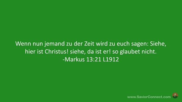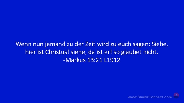 Wenn nun jemand zu der Zeit wird zu euch sagen: Siehe, hier ist Christus! siehe, da ist er! so glaubet nicht. -Markus 13:21 L1912