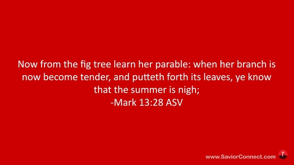 An dem Feigenbaum lernet ein Gleichnis: wenn jetzt seine Zweige saftig werden und Blätter gewinnen, so wißt ihr, daß der Sommer nahe ist. -Markus 13:28 L1912