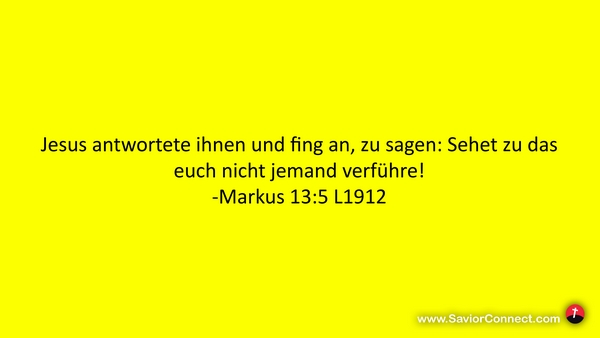 Jesus antwortete ihnen und fing an, zu sagen: Sehet zu das euch nicht jemand verführe! -Markus 13:5 L1912