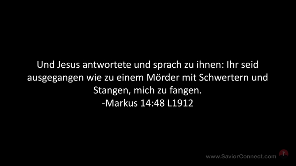 Und Jesus antwortete und sprach zu ihnen: Ihr seid ausgegangen wie zu einem Mörder mit Schwertern und Stangen, mich zu fangen. -Markus 14:48 L1912