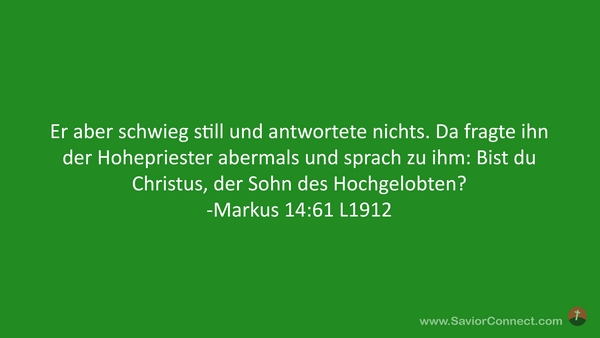 Er aber schwieg still und antwortete nichts. Da fragte ihn der Hohepriester abermals und sprach zu ihm: Bist du Christus, der Sohn des Hochgelobten? -Markus 14:61 L1912